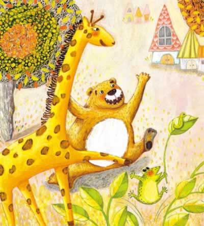 动物们正在玩捉迷藏。很快找到了藏在树后的长颈鹿,藏在岩石后的小熊,还有藏在树叶里的青蛙。可是,还有一个动物没有找到。它是谁呢?啊!那边的脚印是谁的?原来是兔子,它掉进了坑里。怎么才能救出兔子呢……