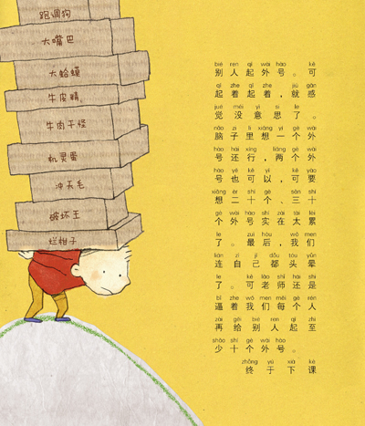 老师拍拍手上的粉笔灰,停顿了一下,然后告诉大家:“现在我们要上一堂外号课。”