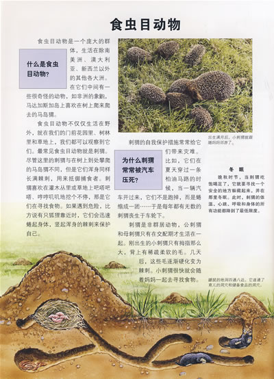 本书谈到了许多被人类伤害和威胁的哺乳动物。当我们讲到需要较大生存空间的大型动物,如大象、水牛和犀牛时;讲到需要很大活动范围的猛兽——西伯利亚虎时,就能马上发现它们为什么今天都濒临灭绝:因为它们的生活空间越来越小了。即便是那些生活隐蔽的小动物,如老鼠、刺猬、猫鼬、小鹿等,也都由于环境的变化而失去了生活的基础。此外,由于人类大量使用杀虫剂而导致蝙蝠的数量下降,水獭和海狸也由于江河湖海的水质下降而数量不断减少。如果我们的青少年知道了这些问题,就能明白该怎样去保护它们。