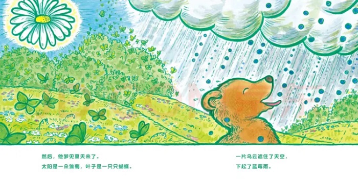 在舒适又温暖的窝里,全身卷曲又毛茸茸的大熊进入了梦乡。 在梦里,大熊又变回了熊宝宝, 他梦见了四季的美景,也梦见那些自己深爱的事物。 翻开书,一起分享大熊的美梦! 《纽约时报》畅销书作者凯文·汉克斯在这个故事里用色彩和想象力呈现了大熊五彩缤纷的四季梦。充满诗意和童心的文字,轻盈又丰富;由清晰圆润的线条和鲜艳明亮的色彩组成的水彩画,创意十足且细节丰富有趣,十分吸引孩子,给他们愉悦的阅读体验。