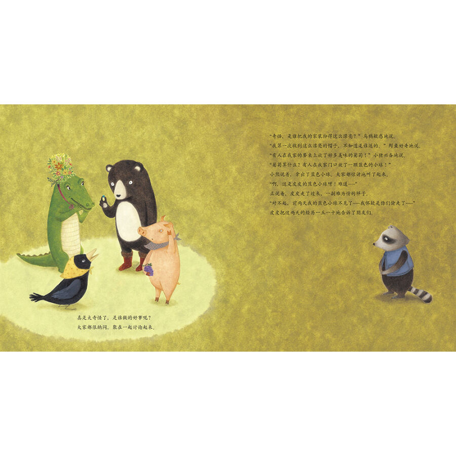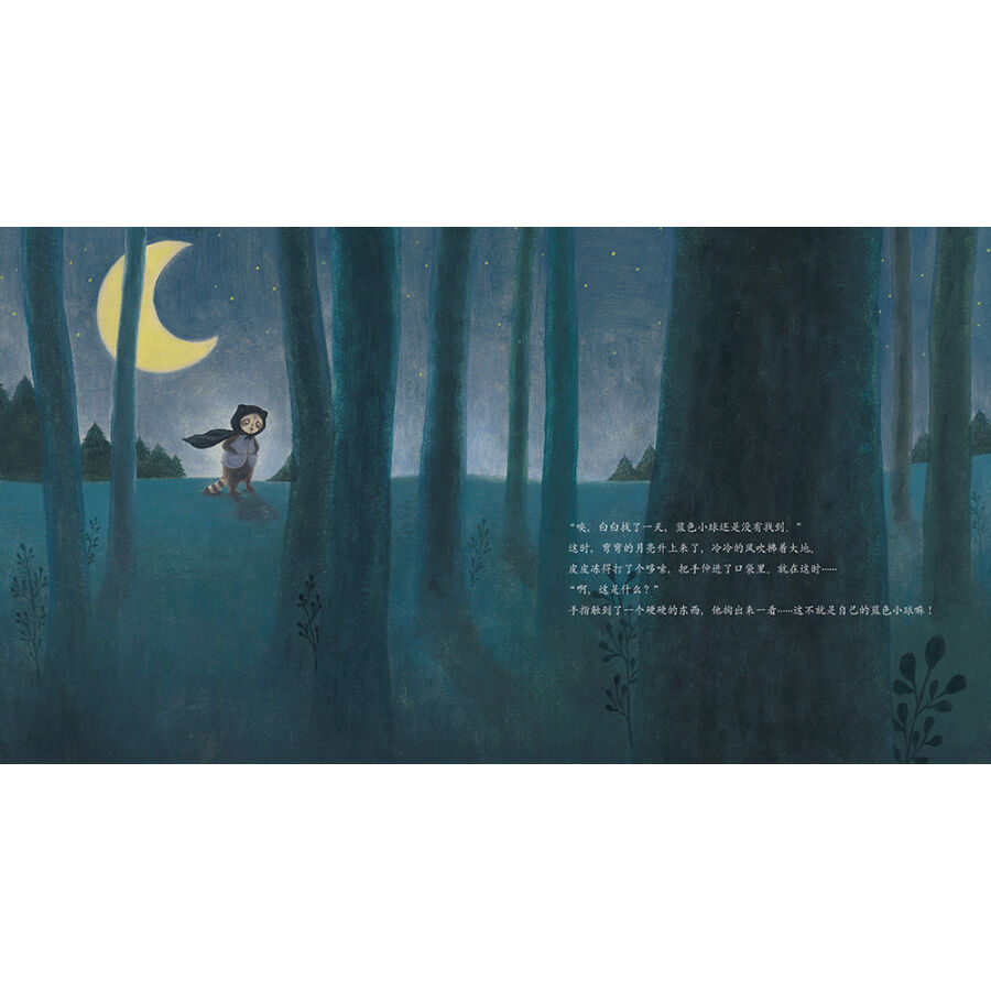 皮皮在森林里捡到了一个又小又漂亮的蓝色小球,无论是吃饭还是和朋友玩或者睡觉的时候他都一直拿着它。但是有一天,蓝色小球不见了……