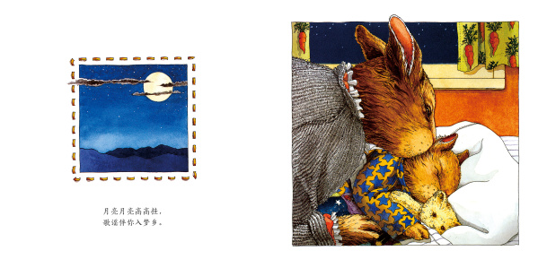 兔妈妈在傍晚时分温柔歌唱,带孩子领略自然界中所有美好的事物,直到孩子安然入睡。画家西尔维娅·隆十分喜爱并珍惜自己作为“母亲”的身份,经常给她的孩子们唱歌谣、讲故事,就像她的母亲当年做的一样。从小到大,西尔维娅·隆一直钟爱经典摇篮曲Hush Little Baby,在这首歌谣中,妈妈向自己的宝贝许诺,会千方百计找到他喜欢的东西:反舌鸟、钻戒、马车……相比之下,西尔维娅·隆更想鼓励孩子到大自然中寻找慰藉心灵的美好事物,体味母爱的温暖。正是这种信念唤醒了西尔维娅·隆的灵感,让她重新改编创作了这首新的歌谣。充满韵律的歌谣让可以让孩子反复唱读,促进孩子的语言发展;美好的自然事物,促进了孩子对美的感受。