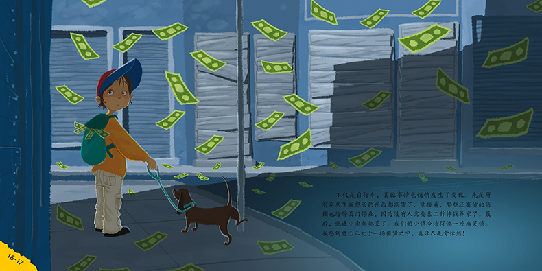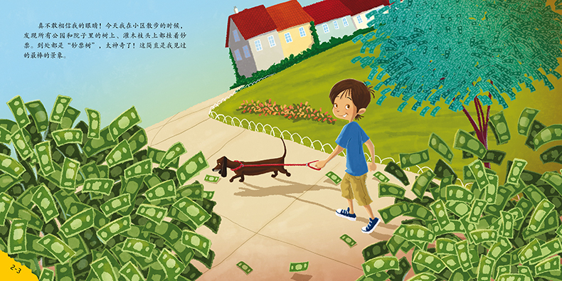 真不敢相信我的眼睛! 我看到所有公园和院子里的树上、灌木枝头上都挂着钞票。 这实在是太不可思议了!曾经我们梦想着不工作、不攒钱就能得到所有我们想要的东西。这一切似乎真的成为现实了。但事情慢慢就变味儿了。很快,我什么都不想要了,觉得美梦变成了一场噩梦。也许努力工作,攒下钱来把自己