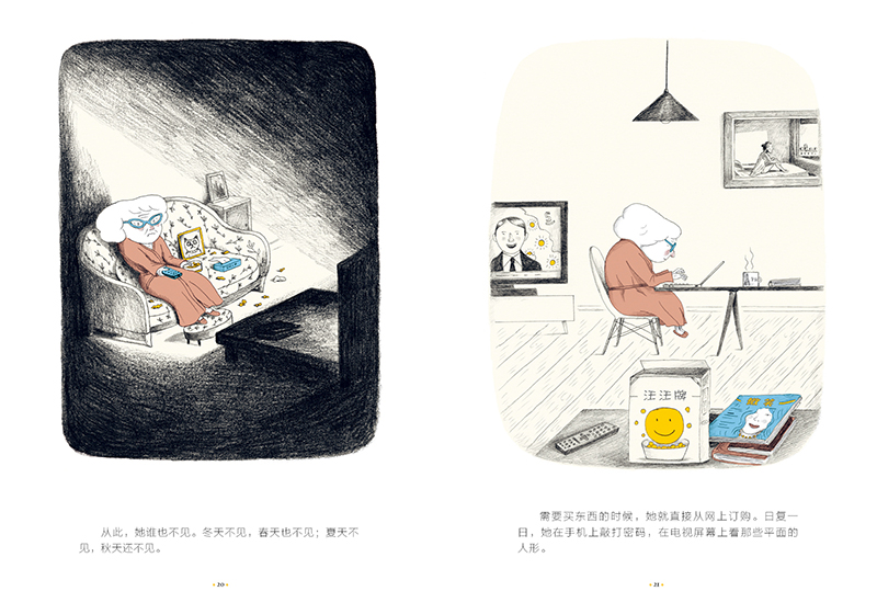 这个故事在插画家塞巴斯蒂安·马瀚细腻的笔触下,幽默而温柔地抚慰着读者的心。