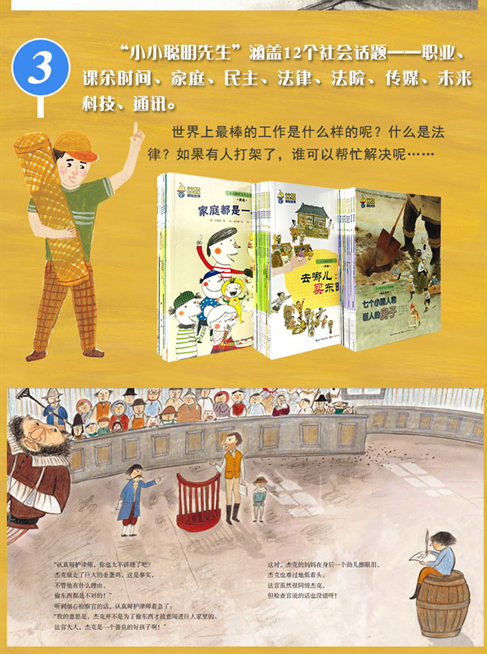 ★“小小聪明先生”涵盖12个社会话题——职业、课余时间、家庭、民主、法律、法院、传媒、未来科技、通讯