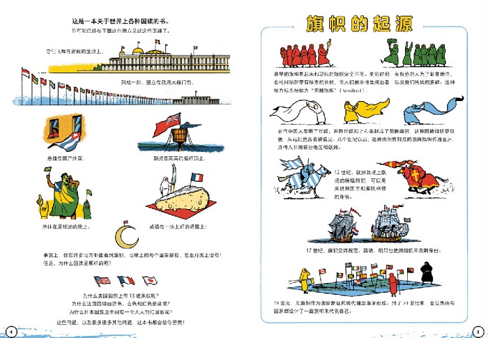 对标志和符号感兴趣的读者一定会对这本书爱不释手。身穿制服的小人儿(他们是旗帜学家,即研究国旗的人)是国旗颜色和符号的向导。引人入胜的见解与复古插画风格完美地结合在一起,令人想起了埃尔热经典作品《丁丁历险记》。——《出版人》周刊