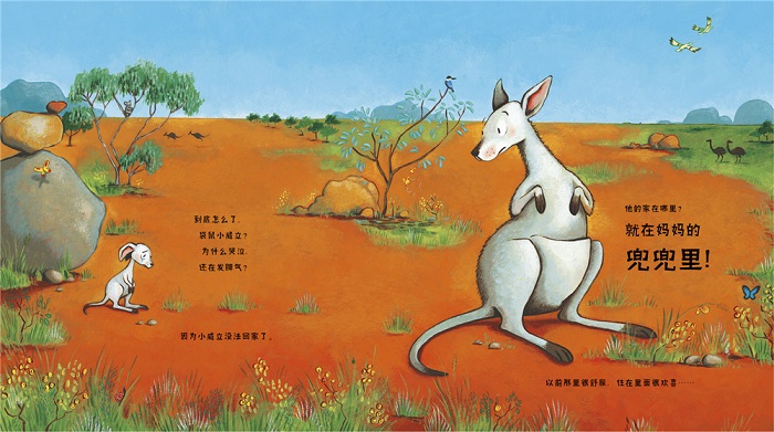 袋鼠小威立一直住在妈妈的育儿袋里,*近他很不开心,因为妈妈的兜兜里有东西在动,他想去寻找新的“家”。他遇到了袋熊妈妈、袋貂妈妈和野狗妈妈,她们都邀请他到自己的育儿袋里住。要知道,野狗可没有育儿袋!小威立意识到了危险,逃回到妈妈身边。*后,在他把自己的真实想法告诉妈妈后,通过妈妈的解释,他才发现,在妈妈的育儿袋里动来动去的——原来是他新出生的小妹妹!现在,他意识到自己是个大男孩了,已经不需要住在妈妈的育儿袋里了,他开始享受在育儿袋之外的自由。 这是一个关于误会和成长的故事,希望父母在生活中可以关注到孩子的异常行为,关心孩子的心理变化,及时沟通、化解不良情绪,并且发现他们独立的一面,这便是——成长。