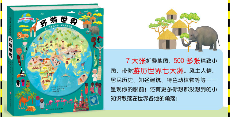 2. 创意新颖,内容丰富,并且变挂图为简单的可展开式精美探索图册,既有利于孩子在桌面上阅读(您可以观察一下孩子对悬挂式地图的使用率),又可以旅途中随身携带,大大提高了阅读率,实用性和便携性。