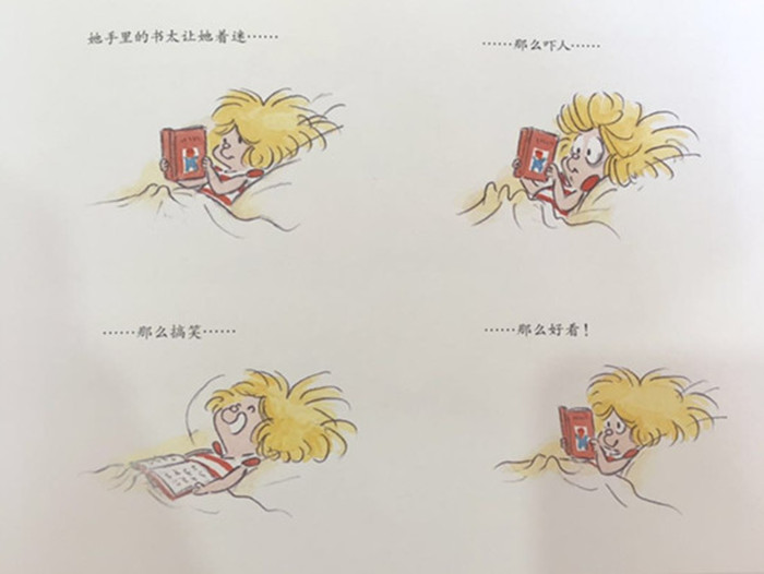 到了该睡觉的时间,小女孩安娜安娜还在读书。