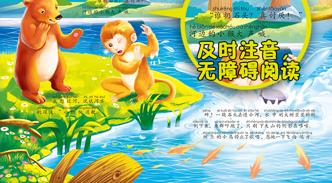 一条小河从山下流过,映衬出蓝天、绿树和野花朵朵。鱼儿在水中游泳,真快活。砰!一块石头丢进了河,鱼儿吓跑了。这是谁的杰作呢?