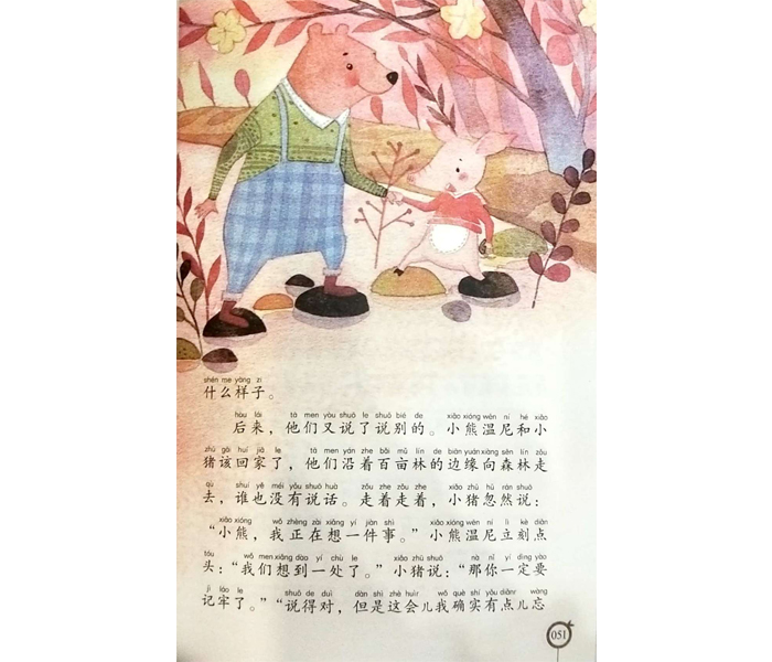 小熊温尼·菩是英国著名剧作家、小说家、童话作家和诗人A.A.米尔恩(A.A.Milne,1882—1956)为儿子创作的一个有趣的童话形象。小熊温尼?菩看似憨憨傻傻,但是他非常仗义,对朋友非常关心。他和小猪、小兔、驴子、袋鼠一家还有小老虎一起住在百亩林,他们之间非常友爱,但是偶尔也会有点小矛盾;每个小动物都是善良、热心的,但是偶尔也会犯糊涂。他们还有一个共同的朋友——罗宾。他们天真可爱,做起事来常常让人捧腹大笑,他们走到哪儿,哪儿就充满欢笑、童真。《小熊温尼?菩》一书风靡全球,当然以此为蓝本的动画片更是受到了亿万儿童的热烈欢迎。