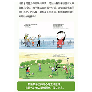 诺丽总是努力做正确的事情,可当她看到学校里有人欺负赫克托时,她不敢站出来说一-句话, 害怕自己也被同学们孤立。内心展开激烈斗争的诺丽,能够勇敢地站出来帮助赫克托吗?鼓励孩子坚持内心的正确选择,有勇气为他人挺身而出来仗义执言。
