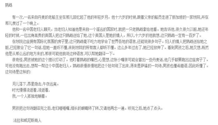 《走出非洲》是凯伦·布里克森的一部自传小说,作品描绘了作者1914年至1931年间在非洲经营咖啡农场的生活故事。作者以优美、缓慢而又忧伤的散文式语言讲述了她一生中最丰富和最美丽的回忆,在非洲那片土地上她倾注了太多的感情,而对于最终远离非洲的悲伤,她久久未能平复。作者匠心独运,将众多的人、事、景、物融于一炉,字里行间流露着对非洲这块热土以及在这片土地上繁衍生息的人民的纯真热爱。《走出非洲》被认为是凯伦?布里克森最成功的作品,是她创作的顶峰,为她赢得了永世不衰的国际声誉。