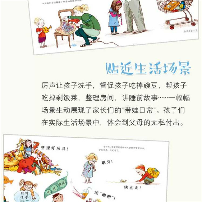 爸爸妈妈有时候可烦了,告诉你们什么该做什么不该做,唠唠叨叨.….可他们也为你做了很多事。爸爸妈妈是你投掷番茄酱的靶心,是你摇晃小窝的帐篷杄,是你擦拭脏物的毛巾….重要的是,他们会给你大大的拥抱!大声读出这些父母做得有趣又亲切的事情,看看爸爸妈妈有多爱你吧!