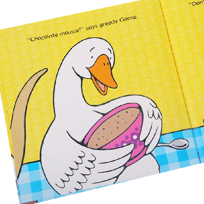 餐桌上,饥饿的海豹大喊大叫:“我的午餐在哪儿?”;猴子爬上了餐桌,并且在上面乱蹦乱跳;小鸭子皱着眉头,生气的说:“我讨厌吃胡萝卜!”;贪吃鹅最喜爱的巧克力慕斯也被鼹鼠和鬣狗抢走了,更可气的是绵羊,宁愿躲起来睡觉也不愿意去洗碗哎呀呀,你看看这杯盘狼藉的桌子,看看这群懒惰又没礼貌的动物们,小宝贝,你可不能学他们呦!家长可以引导孩子学会餐桌礼仪等文明行为。书中将孩子喜欢的美食和滑稽的动物相结合,注入押韵的短语,孩子朗读时定能朗朗上口。