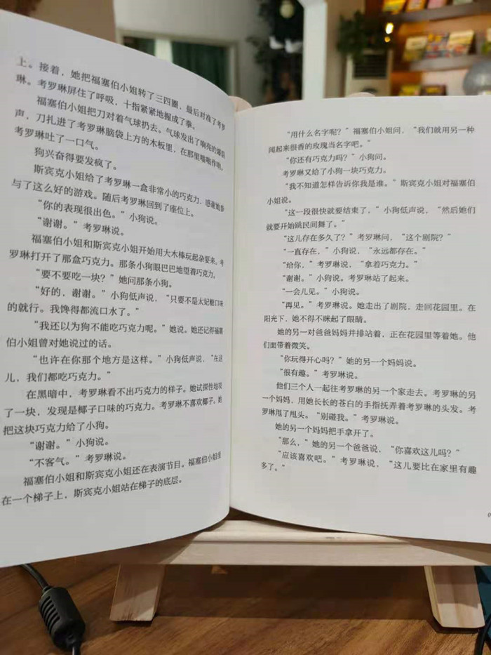 本书是一部引进自英国的面向少年儿童的文学作品。刚搬到新家的女孩考罗琳在家中探险,发现一扇旧门后有一个和自家一模一样的地方,那里有另一对爸爸和妈妈。他们长着黑漆漆的纽扣眼睛,并且承诺会给她完美的爱和完美的生活,只要她永远留下来。考罗琳识破了“完美妈妈”的陷阱,凭借自己的勇敢和机智逃离了这个虚假的世界,最终回到了真正的爸爸妈妈身边。本书充满了奇幻色彩,故事主题积极向上,鼓励小读者们要勇敢面对生活中的不完美。