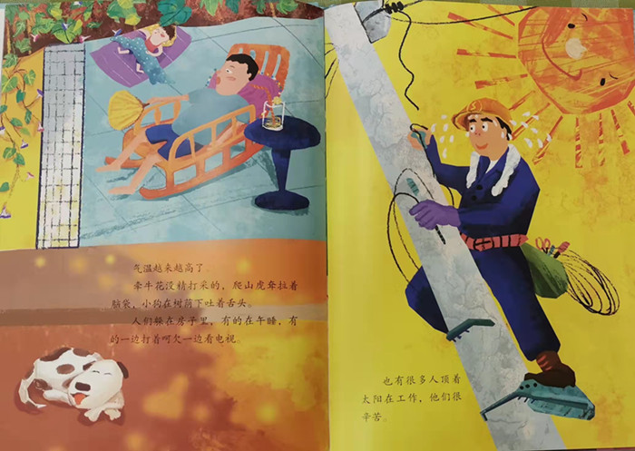 春夏秋冬,山是什么颜色?水是什么味道?花草树木是什么感觉?小动物和人类在干什么?山、海、河、田野、公园、学校……又是怎样的面貌?在每个季节来临的时候,四季姑娘向地球发出询问,地球各处给出回答,书中以这样的奇妙构思,将不同季节的自然风貌和人类活动一一呈现。这套优美的绘本,不标注“是什么”,而是让孩子看得懂、听得明,引发孩子对相关领域知识的好奇,启发他们更深入的探索。本书描绘了夏天的景象。夏天真的好热,连知了都有气无力的。可夏天又是多么有趣啊,有很多好吃的、好玩的。啊,夏天真是让人感到美好的季节啊!