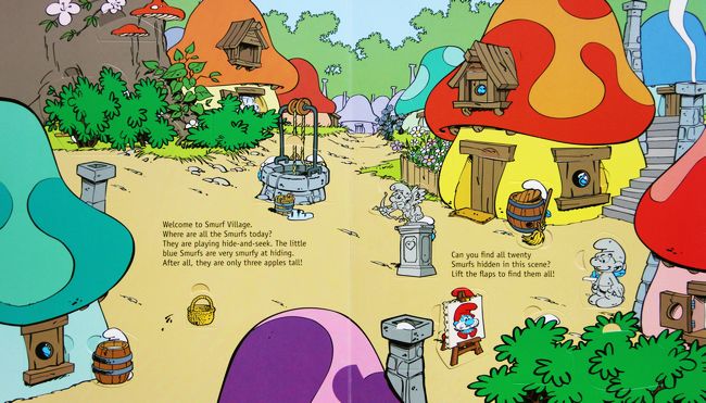 Can you find all 100 Smurfs? In this oversize board book with more than 80 flaps, search for favorite friends like Papa, Smurfette, Clumsy, and Brainy, and discover all kinds of fun Smurf surprises along the way! Leave no flap unturned, since Smurfs might be hiding in the village, near the river, in the forest—almost anywhere