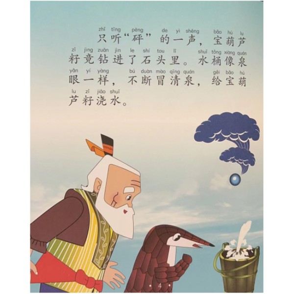 《葫芦兄弟 注音版2:七色葫芦》 宝葫芦籽“咚”的一声,破石而入,钻进地下。眨眼间,长出了枝繁叶茂的藤蔓,蔓上开出七朵美丽的小花,继而结出了红、橙、黄、绿、青、蓝、紫七色小葫芦……