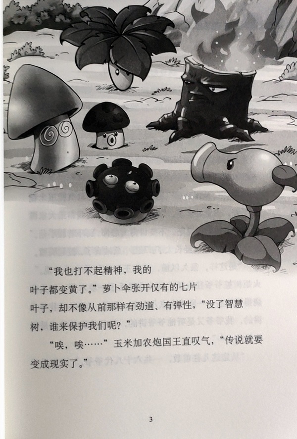本书讲述了一个关于智慧的故事。 植物王国的智慧树不见了,双向射手和好友循着“树王耳朵”的踪迹,一路追寻。他们遇到了奇怪的“二要碑”,打破了花瓶方阵的包围,在一处废弃的矿坑与矿工僵尸展开了激烈的战斗。双向射手用一片号称带有藏宝图的树叶骗过矿工僵尸,却不料僵尸博士燃起一把火烧向了智慧树。植物们悲痛反击,而不久也明白了世上的宝藏到底在哪里……