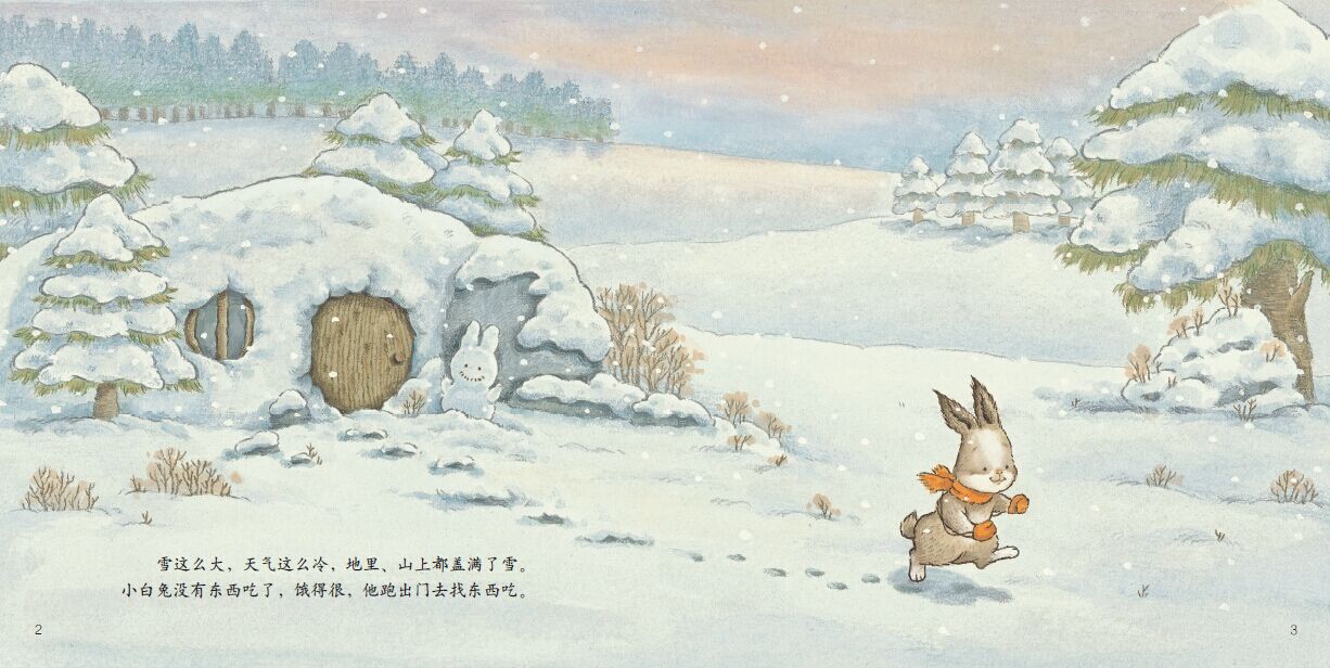 《萝卜回来了》—— 一个下雪的冬天,小白兔和他的小伙伴们都在雪地里寻找吃的东西,因为伙伴们深厚的情谊,他们都同时担心彼此找不到东西吃。小白兔找到萝卜分享给朋友,通过动物们之间的“爱心传递”,最后萝卜又回到了他的身边。