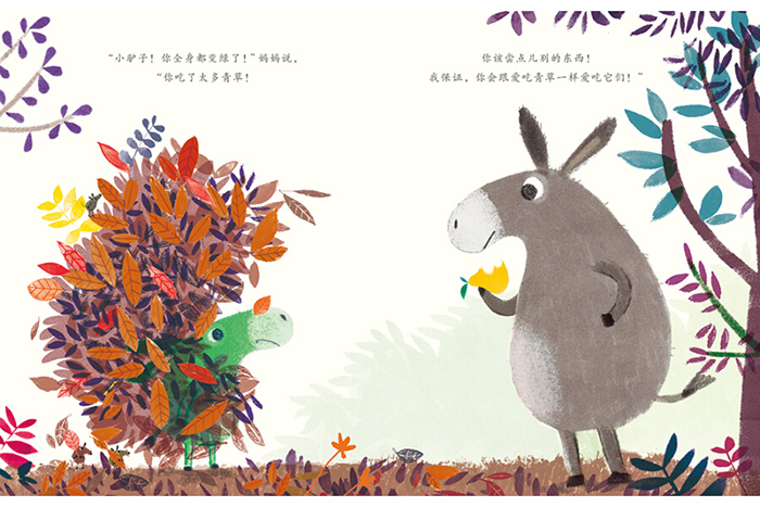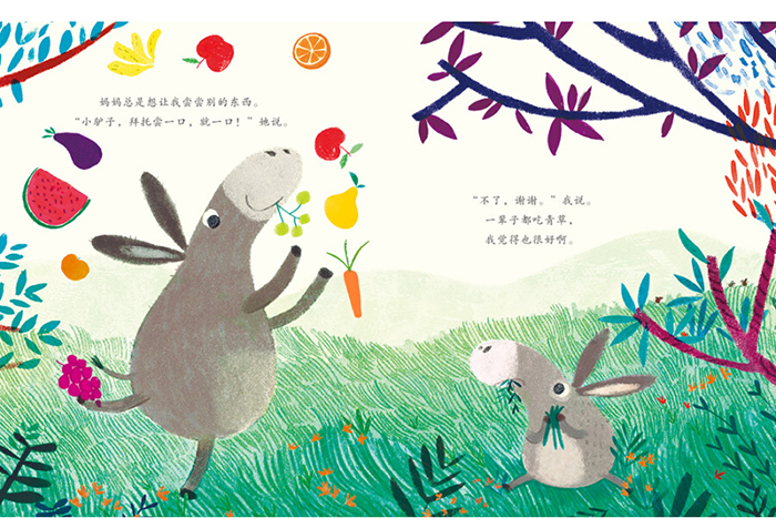 小驴子很爱吃青草,青草可口又多汁,新鲜又翠绿。他的枕头也是青草做的,这样当他一起床,马上就能吃到它。可是,因为吃了太多青草,小驴子全身都变绿了!于是,妈妈让小驴子尝试吃些别的食物,可小驴子都不喜欢,直到他尝了一口胡萝卜……