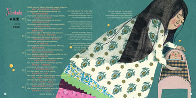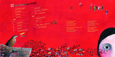 我在一所亲子教育中心工作,我们中心有跨国家庭。他们听了这张光盘说,这让他们想起了自己儿时唱过的歌谣。听这张CD的时候,你不一定会被所有的曲子吸引,但终会找到自己心头所好。一首首儿童歌曲让我们从一种文化进入另一种文化。歌词翻译到位,插图漂亮。