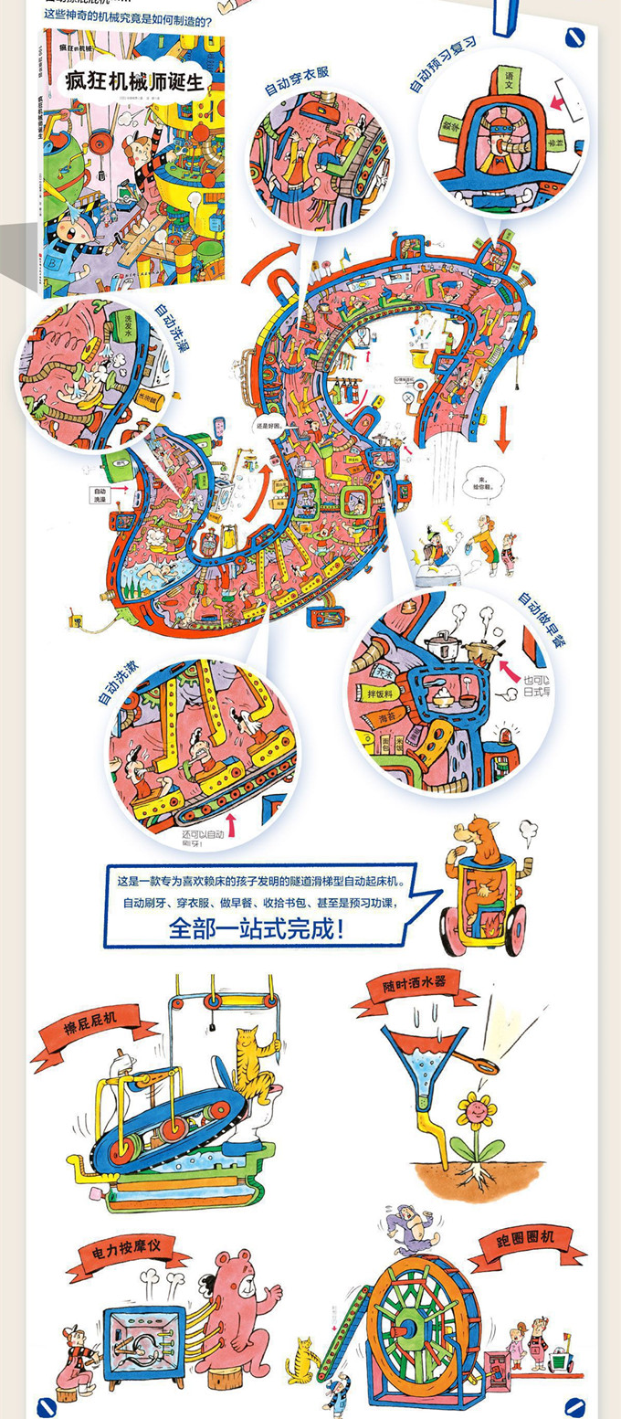 机械城里住着一对喜欢制造机械的兄弟, 他们每天都在为城里的居民制造可以让生活变得更加便利的机械。 他们发明了早早起床机、自动擦屁屁机、 梦境改良仪、巨型松饼制造机…… 快来看看他们今天又在制造什么神奇的机械吧!