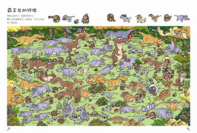 “找一找”系列是韩国引进版权视觉游戏类图书,共3册:《好多好多恐龙》《好多好多童话》《好多好多神话》。根据每本的主题设置相应场景的找图游戏,让孩子在游戏中增长知识,提高观察力、专注力和创意想象力。 《好多好多恐龙》设置了不同的寻找游戏页面,以恐龙的生活为主题背景,让孩子在有趣的场景中寻找指定小图,在锻炼观察力的同时了解关于恐龙的知识。