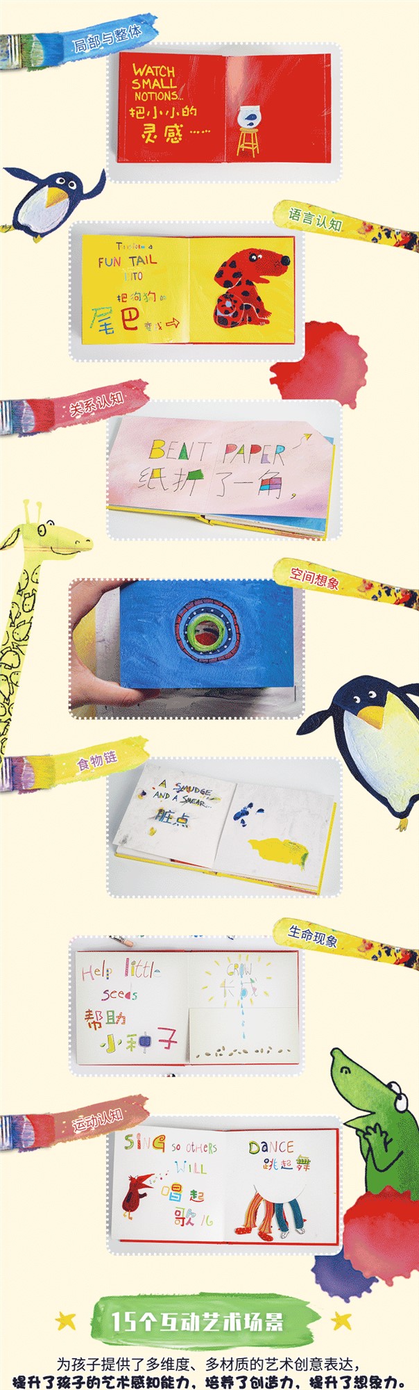 本书属于文教类图书。本书是一本创意读写游戏书,适合3岁及以上小朋友阅读。每一页都充满了鼓励、创意,一张撕裂的纸能变成鳄鱼的嘴巴;折角的纸张可以变成一只超萌的企鹅;一滴水彩变成了无数个小狗狗揉成一团的废纸,变身为一只小绵羊……是不是充满了奇思妙想?读这本书,就像让孩子亲身参与一场艺术的魔法,让孩子切身体会生活的智慧,就是把那些不可避免的错误,变成一场美丽的邂逅。