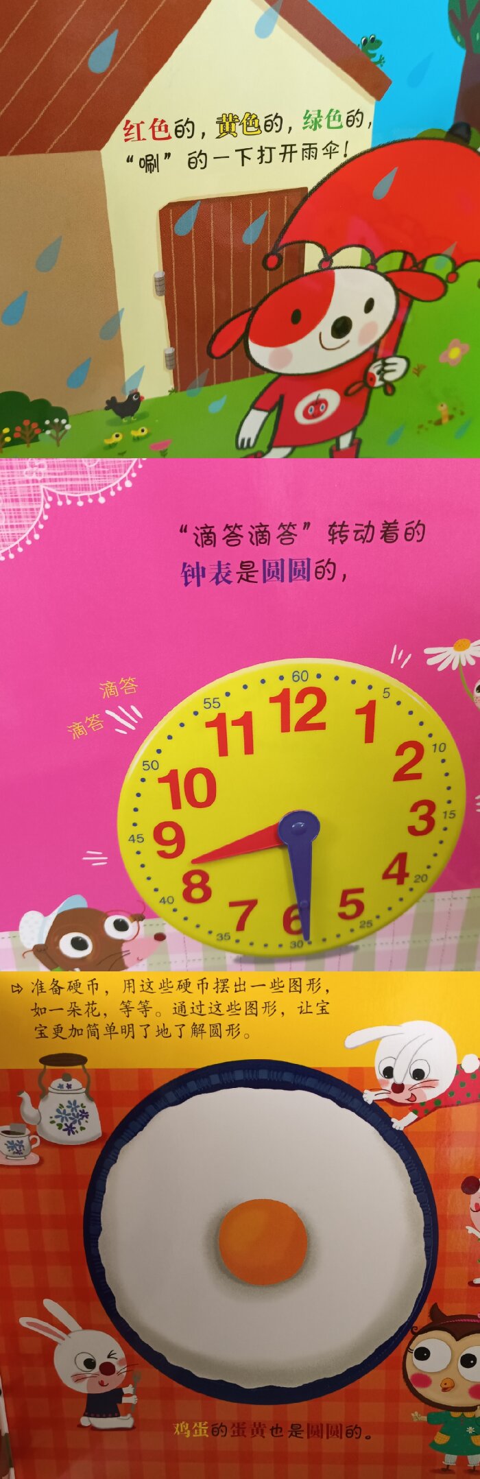 本套书包含了数学方面的核心概念 ? 分类——事物的分类、颜色的分类、场所的分类等。 ? 数字——学习从1到10的数字和名称,并且感受数字所代表的数量的不同大小。 ? 形状——通过对线的形状和影子的形状的学习培养孩子的认知的能力,同时学习圆圈、三角形、四角形等*基础的图形。 ? 空间——通过对前、后、上、下、里、外、旁边、中间、近、远等有关位置关系的词语的学习,并将它们应用到生活周围的不同状况之中,学习*基础的有关空间关系的概念。 ? 测量——对事物的大小、长短、量的多少、重量等进行比较,利用大、小、长、短、多、少、重、轻等用语对事物进行区分。 ? 规律性——颜色、形状、行为、数字看似复杂,但其中却隐藏着具有一定顺序的重复排列的规律。