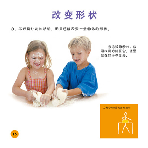 《想一想做一做:力和运动》还介绍了运动中的变化、斜坡、摩擦力、改变形状、改变方向等概念。这套专为3-6岁的小孩子量身打造的科学丛书从生活中的知识入手,讲述物质、物质的特性以及它们的物理过程。书中包括大量生动有趣的图片、简单轻松的文字介绍,以及童稚可爱的科学简笔画。本册带来力和运动的知识:运动就是当一种物体由一个位置换到另一个位置时所发生的。力是造成运动的因素。推是一种力。拉就是另一种力。