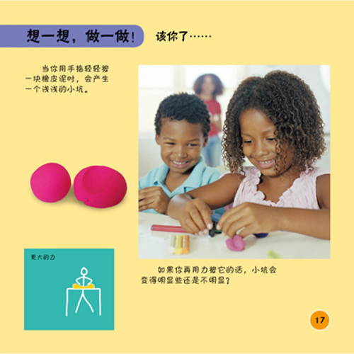 书中每个对页都分成两个部分,左页是为孩子介绍简单的科学现象和知识,右页则给孩子提出相应的科学问题,让孩子自主思考