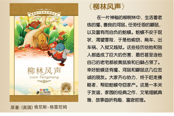 《柳林风声》是一本关于友谊、家园的经典之作,文笔细腻典雅,对大自然的描写丰富流畅,故事曲折有趣,富含哲理。