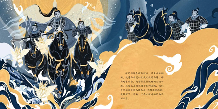 契合现代审美的图画:现代漫画结合古典画风,山鬼天真烂漫、少年坚毅勇敢的形象被展现得栩栩如生,山野间的自然气息,战场上的惨烈凄凉,都展现出独特的东方美感。小读者在阅读中能够感知楚辞之美、楚文化之美。
