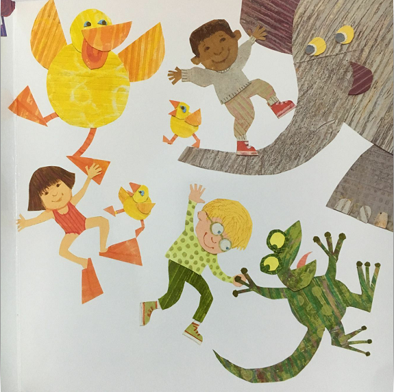 Lindsey Craig's rollicking text features funny sound words (Tippity! Creepity! Stompity! Thumpity!), dancing animals, a singsong beat, and a guessing element just easy enough for preschoolers to anticipate. Marc Brown's artwork is bright, textured, and joyful, a collage of simple shapes for kids to find and name.