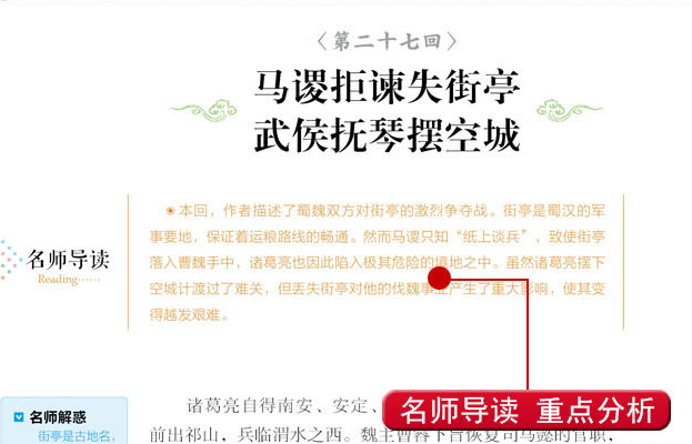 《三国演义》是中国历史演义小说的经典之作,通过波澜壮阔的历史背景、错综复杂的政治和军事争斗、叱咤风云的英雄人物,演绎了三国时期各种社会矛盾的渗透和转化。忠义和奸佞的冲突、豪杰与奸雄的较量、谋略与武力的斗争……一场场刀光剑影的生死悲欢,一幅幅风云变幻的历史画卷,留下了品位不尽的千古传奇!