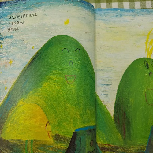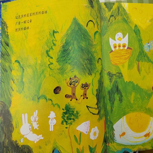 在《笑的星星》中,一打开,就是正在笑的星星。然后是笑的山、笑的森林、笑的城市、笑的公园、笑的房子、笑的“我”、笑的雨、笑的花、笑的云朵、笑的夜晚…无论是山里、森林里还是城市里,都生活着无数的生物,它们无一不在以自己的方式笑着。本书色彩时而辉煌亮丽,时而安静诗意,但让人看来都忍不住嘴角上扬。