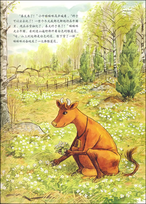 在瑞典,差不多每个小朋友的收藏中都有一本小牛嘛嘛哞的故事,这头特立独行的小牛和她的乌鸦朋友是瑞典小朋友心中的明星。这套图画书获得了瑞典最优秀图画书奖,已经被翻译成德语、俄语、匈牙利语、丹麦语、韩语等30余种语言,仅在瑞典销量就逾百万册。