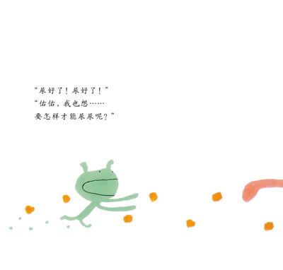《尿尿是什么?》佑佑不用包尿布了,他会自己上厕所喽!窗帘上的娃娃伦伦很兴奋,他要佑佑教他怎么上厕所。两人喝了一大瓶果汁,佑佑躺在床上等着尿尿,伦伦则溜回窗帘里,结果一觉醒来……