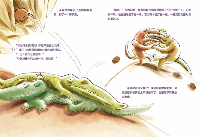 《小个子泽克》是一套围绕男孩泽克在非洲部落的奇遇生活展开的图画故事书。故事中,来自于非洲丛林的鳄鱼、猩猩、猴子和面包树、棕榈树等都成了鲜活的角色,图画色彩鲜艳,诙谐逗趣,又带着点儿神秘感,带给孩子们丛林探险般的感受,同时,每一册都讲述一件小泽克遇到的事情:他的见闻、他遇到的麻烦以及他是如何应对的。如《我要帮助好朋友》一册讲述了泽克陪自己的小猴子朋友寻找家园的故事,并隐含了关于友谊、离别的话题。
