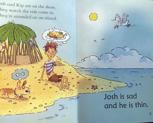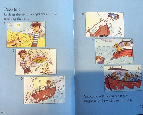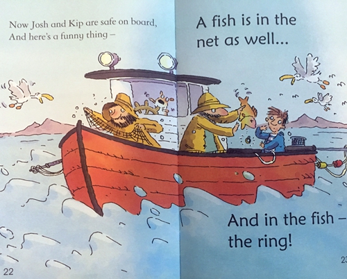 《魔法指环》:Josh在沙滩上和狗狗Kip找到一个指环。Josh擦了擦指环,魔法出现了。。。指环可以满足Josh的愿望。最后的危机时刻,还是一艘渔船救了他们。本书为初级儿童读物系列中的第一级(共22本),内容词汇均简单,适合幼儿和初学者亲子共读:自然拼读the-very-first-reading-level。整体编排巧妙,专为语言启蒙和亲子阅读而设计,左边页面的文字字体略小由家长朗读并加以解释,而右边的文字字体大而简单朗朗上口,适合让孩子大声拼读出来,这样搭配,孩子的阅读成就感大大提升。书末附有几个基于故事情节的亲子小问答以巩固阅读的乐趣和收获,所有的问答都附有答案哦。