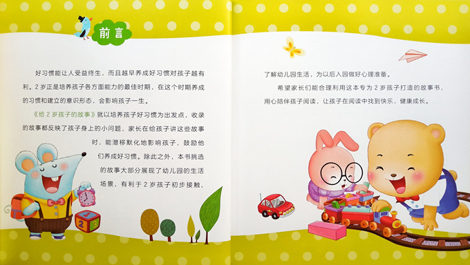 本书是专为2岁孩子打造的故事书。共集合了11个故事,语言简单,故事有趣,非常适合家长给2岁宝宝阅读。整本故事主要强调了如何培养宝宝的好习惯,以孩子们的实际生活为例,让宝宝在故事中看到养成好习惯的重要性,自觉养成好习惯。整本书涉及到的习惯有:说话不夸大、自信大方、注意安全自我保护、乐于分享等方面,养成这些好习惯,为孩子上幼儿园打下良好的基础。
