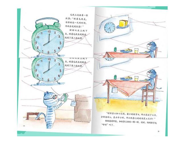 《甜甜顺着毛线走》故事里的甜甜一个人在家度过了一个充实的一天,不仅学会了看时钟,还安排好了学习和玩耍的时间。通过故事帮助孩子认识时针分针,学会看时间,并对时间产生概念。告诉孩子合理安排时间,就能做时间的主人。