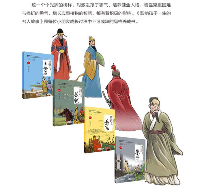 《影响孩子一生的名人故事》是有名作家、翻译家、出版家章衣萍、吴曙天夫妇二人,潜心数年,专为孩子撰写的一套中国历史名人读物。全套书精选孔子、孟子、管仲、班超、诸葛亮、陶渊明等二十四位历史名人的生平故事,从春秋战国到清末,贯穿两千多年的历史。这一个个光辉的榜样,对激发孩子志气、培养健全人格、增强克服困难与挫折的勇气,增长应事接物的智慧,都有着积极的影响。《影响孩子一生的名人故事》是每位小朋友成长过程中不可或缺的品格养成书。