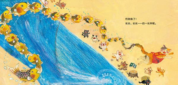 猫妈妈可厉害了,带着21只小猫去河边钓鱼——用尾巴钓鱼哦,钓到长长、长长——的一长串啊。小猫们饿了,排成长长、长长——的队等着猫妈妈烤好香喷喷的鱼来吃。吃完了鱼,小猫们刚准备玩一阵儿,哇,遇到了蜈蚣叔叔。嗖嗖嗖——猫妈妈让蜈蚣叔叔不要来吓唬小猫。好啦,现在,蜈蚣叔叔和小猫们一起玩耍、一起读故事书。好困啊,小猫们跑到长长、长长——的被窝里睡着了。