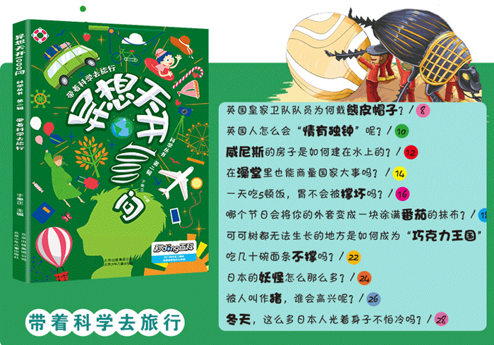异想天开1000问科学丛书(第二辑)共四册,分别是《身边奥秘大探索》《带着科学去旅行》《天文奥秘大发现》《环球地理大冒险》,这套书收集了孩子们突发奇想的各种古怪问题,涉及世界奇闻、天文、地理、身边的科学等四个领域,不仅语言文字通俗易懂、形象生动,还结合文字配以夸张的卡通形象,大大激发了孩子们探索问题的兴趣。因此,这是一套图文并茂、趣味盎然的儿童读物。