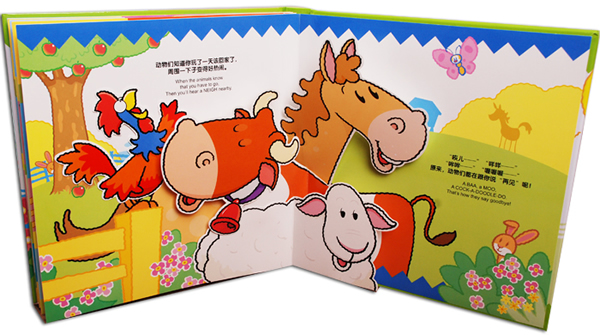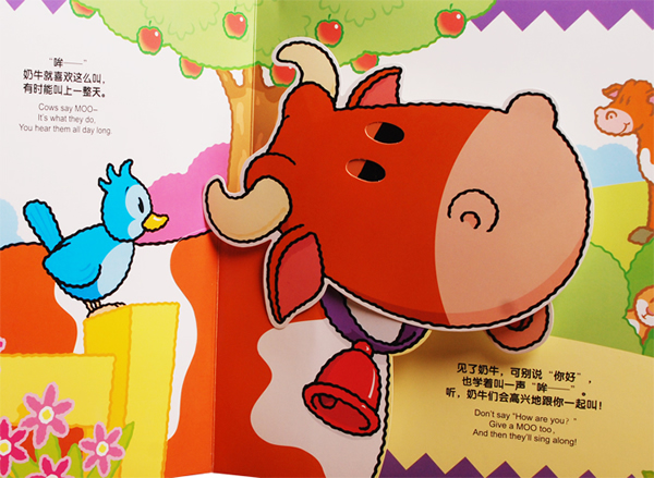 爱玩是孩子的天性,游戏是孩子的生活重心,“乐乐趣”立体玩具书兼具了书的内容和形式,也拥有玩具的趣味和功能,跳出平面书的限制范围,创造了三维立体的空间,提供让孩子可以动手去“玩”的对象,设计了让孩子用眼去发现、去探索的机关和结构,让孩子去鉴赏体会艺术美感的视觉图像。它将给您的宝宝带来又快乐又益智的游戏时间。更重要的是,看到专注于立体玩具书的宝宝,您将不用为宝宝以后注意力不集中而发愁。 ●3D可爱立体+双语认知+趣味发声