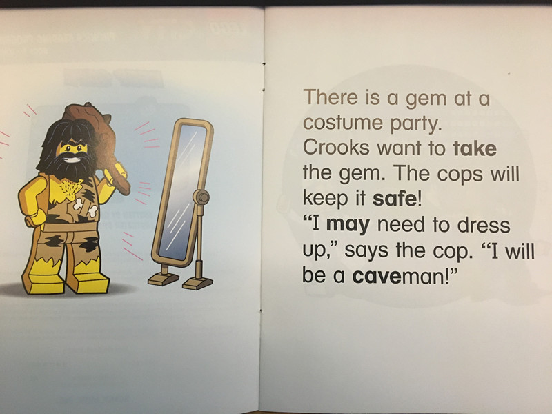 当然,这套phonics必然要有拼读的练习,只是沉迷情节就浪费了作者把乐高和拼读结合的本意啦!封面后的词汇全都在书中出现哟!这套书不是phonics教材,应该是有拼读基础的孩子的练习,或者是启发有单词基础的孩子发现字母组合的发音规律,再或者乐高迷刚开始英文启蒙的小朋友就干脆作为亲子阅读的绘本,等熟悉了故事之后慢慢的引导培养听音辨音能力。