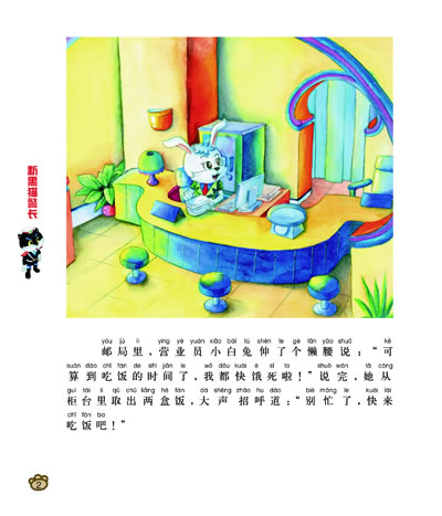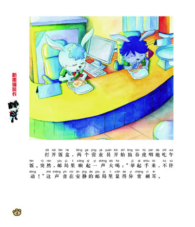 新黑猫警长(注音 全彩 图画书)”系列是以中国经典卡通形象黑猫警长为原型,“黑猫警长之父”诸志祥和著名儿童文学作家杨鹏(代表作“装在口袋里的爸爸”系列)联手精心创作的全新故事。全系列现共六册:《“聪明”的红狐狸》《真假黑猫警长》《恐龙总动员》《奇怪的天气》《机器人小王子》和《黑狼的古怪发明》。故事内容适合学龄儿童,画面精美,文字加注拼音。在《黑狼的古怪发明》中,一只耳和黑狼博士“狼鼠为奸”,共同利用黑狼博士发明的超级电磁波企图操控人们,进而霸占森林市!黑猫警长直捣黑狼博士和一只耳的老巢,却被巨大的激光炮击落,直升机坠入山谷爆炸了……